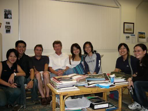 THE DAY IT TURNS AROUND My bad mood has lifted. Finally. Maybe I can just put it down to PMS at an especially bad patch. But before tt, got this off Mich's blog: Guys: Heed the warning What I want to highlight here is not how true/accurate or valuable it is for guys to know this piece of information. What I want to say - forgive me fellow members of our species is this - WHY must we women be so bloody fucking complicated? If we have a problem, then for goodness sakes why can't we just SAY IT/ Why must we hem and haw and then throw a huge prissy fit when the guy doesn't understand us? Let's face it. Assume guys are thick (or tt they will pretend to be even when they're not). Why make life so bloody difficult for everyone by acting so prissy? I personally do not advocate such behaviour. Although I admit tt I may on occasion be guilty of this, but I try my best not to be, because it's fucking hypocitircal and unfair and damn bloody bitchy to do this to anyone. Which is why I have a problem with women who are guilty of such behaviour too. Ridiculous. Anyway back to whatever I was saying, today was the day it all turned around. Special thanks to Wanyi, Sue and Ian for the kind SMSes that they sent me last night and this morning to ask how I was holding up and to tell me to chill, and to the wonderful people who left messages on the tag board, Will, Junjie *waves to JJ* and April... thanks... And April what you say makes sense. It's just tt I'm guilty of still harbouring too much faith in the human species. Essentially I peg everyone to the standards and expectations I set for myself, and belatedly I've come to realise tt not many people are able to meet those standards or expectations. Oh well. Too bad so sad. Anyway back to today. Today was Meeting with NUS President + Victory Lunch with the girls. Muahaha. Yesterday night I was so damn tired I crashed - and I mean system-shutdown type dead-to-the-world will-perish-in-earthquake type crash before 11pm. Woke up this morning at 7am and couldn't get back to sleep. Wahaha. Would have gone for a run but it was fucking raining!!! So just nua-ed in bed. Left the house before 11am to get my Law Year 2 books from a senior - specifically Ryan's friend this guy Yuan1 Yuan3 whom I thought was called Yuan2 Yuan2 (round round). 5 books for $220. Have a feeling it's a rip-off but I'm more of a convenience than bargain-pusher. After tt went from Law Lib to Arts Canteen carrying both my books as well as they gifts for Irene, Peiwen, Serene, Boonchin and Yunshan tt I'd painted the nights before so tt the rest of the girls could personalise them. Wah lau damn heavy. The books were more weights than I'd ever carried since training ended. Fortunately Johnny was there. Muahaha. Evil me pa-katted with Johnny (ok, not really. More like very nicely requested) to have him keep my books for me in his hall coz later after the Victory Lunch we'd be having a team outing that had been orgranised by self and Wendy (aka the long-labouring Welfare ICs of dragonboat). I'd actually planned to pass him the books after lunch, but he took them the moment he came and just carried them all around with him even tho they were super heavy. Damn nice lah. :) Thank you Johnny! Apparently coz every dragonboater has a uniform top to wear, we had to change into these white polo tees sponsored by NUS. Which were DAMN UGLY. They were HUGE - guys' size - I was SWIMMING in my M, white with blue collar and 'teamNUS' with a tiny 'dragonboat' on one side. Bloody hell. When the guys wear it they look ok coz it's more or less fitting. When WE wear it the bloody shirts are so bloody big tt like Vic and Cheeling say, we all look like canteen aunties. Or rather most of us look like canteen aunties and Cheeling looks like the foodcourt auntie. "Char kuay teow or cai peng anyone?" We move off from Arts Canteen to Guild House for the Lunch Meeting with Prof Shih. Lunch. What can I say about it? Besides the supremely orrrbit white polos (and these obiang orange teamNUSdragonboat supporters shirts tt we had to fork out $5 for because the guys had somehow got it in their heads tt everyone needed one even tho these tacky orange shirts I will only reserve for bedtime/intra-hall usage (provided I get a hall next sem) and future orientation camps (when it's time to get wet or dirrty)), we have a SEATING PLAN tt places 2 girls with 7 guys and 2 VIPs at 4 out of the 5 tables, we have to line up in a U-shaped line with 1 girl in-between 2 guys like Primary School kids to shake all the VIPs hands (and contend with weak handshakes and someone grunting the words"Ah, good" to every single person whose hand he shook), and we have speeches by some guy I've never seen who went on and on about strategizing about NUS' Dragonboat and turning last year's loss into a victory. Funnily enough, I have never seen that guy nor heard any word of any such strategy or motivation. And from the looks of the guys next to me, it seems nor have they. Prof Shih gives a speech, and then we get treated to a slideshow of photos from our race. It's mainly shots of the guys (naturally), but where the girls concerned it's mainly shots of us crying and hugging and crying and hugging and crying somemore. Good memories those were tho. If ONLY the bloody background music weren't quite so cheesy. I had to keep looking down to prevent people from seeing tt smug smirk on my face tt barely kept my laughter in check. Food was... well. Conversation at my table was mainly corny lame stuff said by the 2 VIPs to 2 guys at my table. I don't think it's even worth mentioning coz it really was crap. Don't know how he could consider wanting to manufacture a lighter streamlined dragonboat with a motor (?!), or what the whole obsession with increasing the number of spectators for the PM Cup next year is. And with regards to the comment tt that obiang orange spectator's shirt is 'beautiful', is it diplomacy or is it just sheer absolute no taste-ness??? When I heard 