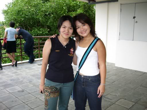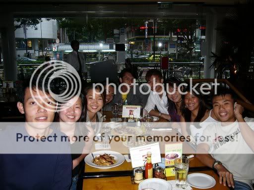 For the record, from left to right tt's Hsien, Junch, Perry and Kerry... I mean Burge, me, Eunice, Elly and Emily. Peiying's left the room and Mark doesn't know how to work the timer on my camera (so he's taking the picture for this shot). After tt we walked around a bit coz Mark was desperate to finish his $20 worth of coupons (he didn't). Bumped into Jon from Law 2 times with his gf. Took some photos with Hsien at the Humanz Balc: