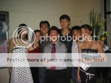 TOM YUM TALAY Yes. A good afternoon nap helps chase the blues away. Ugh. It seems like I'm experiencing PMS now... every entry alternates between calm and collected and bitchy bitchy bitchy. But I'm not. Am feeling better tho, so will just happily talk about food. Yum. One of my first loves (if not my first love) and the reason why I will probably never lose my jelly belly. *sobs* Today we went to Thai Express. I have 2 fave Thai foods - tom yum soup, which I fell absolutely in love in ever since I tried 3 varieties of it in Chaing Mai, and pad thai - intro-ed to me by Mich at this Thai restaurant (Jane's Kitchen or something) at Orchard Towers. Inspite of the seedy nature of tt place and the naked girls painted on the wall of the bar next to the restaurant, the food there is GOOD. It's authentic - heck, the freaking restaurant people speak Thai! But anyway back to Thai Express. Unforunately, the pad thai at Orchard Towers is better. But the tom yam soup, tho obviously no match for authentic Chiang Mai-vikllage-in-the-mountains type tom yum soup, is pretty good. Not hot enough IMHO, but yummy nonetheless. Have decided tt I now like Thai food. Do you feel sick of Italian food? I do. I'm sick of Chinese food coz I eat tt all the time. But I'm also sick of Italian pizzas, pastas, calimaris, etc etc etc. Am looking for new foods to try. I'm not much of a steak/grilled fish person so I can never turn truly Western, but in small amounts Japanese sushi and ramen (i.e. sushi at Sakae and ramen at Don Bistro in Tanglin Mall) are good. Mexican food (The Patio at Holland V) once in a long long while has its attraction, and while German food can be yummy - think pork knuckles (recommendation: Werner's Oven at Siglap), it's really heavy. Am looking for new foods. Have not yet tried Vietnamese, but am dying to try Mediterranean. Korean is ok lah... love bibimbap and bulgogi, but not enough to eat much of it. I'm not much of a foie gras fan but I like fried cheeses. But then again like I said, I'm not enough of a steak/grilled fish fan to truly appreciate Western food. Then again Sebastian's and Vis-a-Vis are pretty near my home, but they cost a hell of a lot to visit. If anyone has good food places to visit with new cuisines tt aren't too heavy, let me know! I want to try new foods. :) Ooh, on a slightly related note, when I was working temp last year, I had a boss who gave me a lot of practical advice. One of those pieces included setting up your own business - in order to be successful you had to find a niche market tt you could sell your goods to. I'm thinking about tt niche market now. F&B is a good way to go coz let's face it, S'poreans will ALWAYS want to eat. The thing is what can you market? Grace Hung was smart when she set up Thai Express coz even tho Thai food was available to S'poreans in Lemongrass or other upmarket Thai restaurants, it only catered to the upper middle class and higher due to its prices and dining culture. Thai Express captures the mainstream middle class - students, yuppies - people with money (but not tt much), not too much time on their hands, with food (not rah-rah fantastic but pretty all right, and more than caters to people who are jaded and downright sick of pasta), affordable prices (bill can be between $10 to $20 a person), good dining/conversational atmosphere, and a hip upmarket image to boot. Same concept as Sakae/Genki/Edo/Sushi Tei I guess, just tt the latter places were overkill. So following this idea, what kind of food can we market? Actually, if I had my way, I would set up a restaurant that sells macaroni and cheese. I'd call it 'Pasta + Cheese' or something to that extent and I'd sell all sorts of pasta with cheese. It would be the usual I guess, tomato/cream/white wine sauces, with baked pastas, lasagnes, but macaroni + cheese WILL be a staple. How can NO RESTAURANT I visit sell macaroni and cheese?! This is a travesty! Kenny Rogers' does, but it's too thick and too salty. And ooh, cheesy soups. Yum. And fried cheeses. Yummer. And dessert? Prob more than just cheesecake. Maybe some sort of sweet pasta thingy? Muahaha. Ooh. TOTALLY unrelated note, one of my freshies posted her online photo album. So for people who want to know how hot Heather is, she's the girl in the polka-dotted dress on the left below.