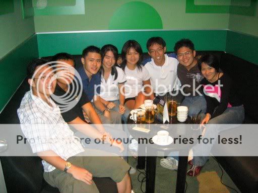 5 HOURS OF KTV Highlight of my weekend: 1st KTV session since February (Ian's birthday). This time we were 'celebrating' Hsien's and Jason's birthdays. I hope I never get a KTV session for my birthday. It's just not my cup of tea. Anyway it was the 8 of us, all ex-classmates. Me, Hsien, Ian, Zhaowei, Jason + his gf (ok, gf is not my classmate. Finally after 3 whole years get to meet her for the first time!), Sam-duh-man and Mark! Whoo hoo. After all this time of "when can we meet up? when can we meet up?" and we FINALLY meet up at K Box at Cine.