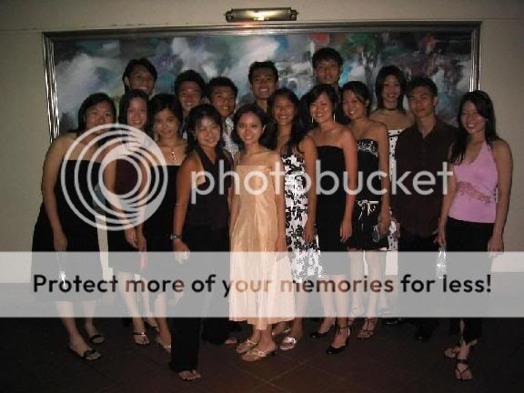 That's all of us (excluding Heather who only came later) at CPK as our food was being served. The 2 birthday babes Xiaohui and Melissa are on the left. And yes, the guy on the phone, Shang, is REALLY on the phone. :P The babe in front of me is Angeline, the one who won the Hottest Babe in Law award. She's soooo exotic-looking. So we shared 6 pizzas (I'm stuffed now) and just chatted about stuff. I'm incredibly happy at how close our OG is. Not everyone is here - we're missing Grace for one! :( -, but in general I'm just really happy our freshies can bond so well. Now if only we could say the same about our counsellors as well... But oh well. Guess you can't have your cake and eat it too. Anyway just in case anyone wanted to respond to my earlier advert about my sensitive guitar-playing song-singing Singapore Idol-quality OGL, muahaha. You're too late. He only has eyes for one person now, and you're probably not her. :P Too bad so sad. Altogether now, AWWWWW. We kind of ran out of steam after the dinner. The usual everyone just stands around and asks "so where are we going now?" type scenario. So in the end, we all just went home. Can you feel my absolute sian-ness? | |