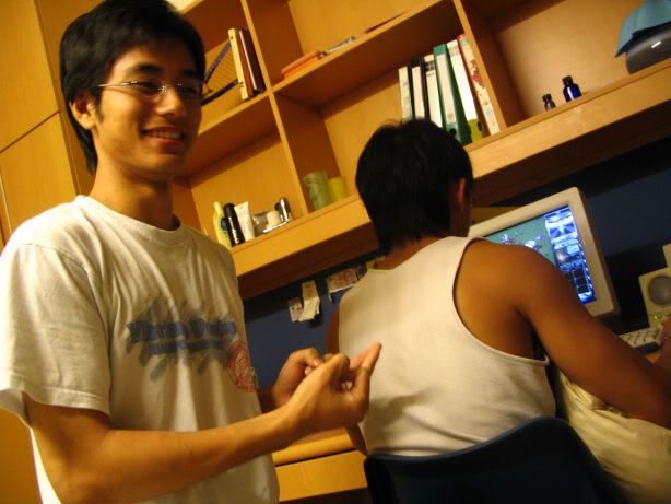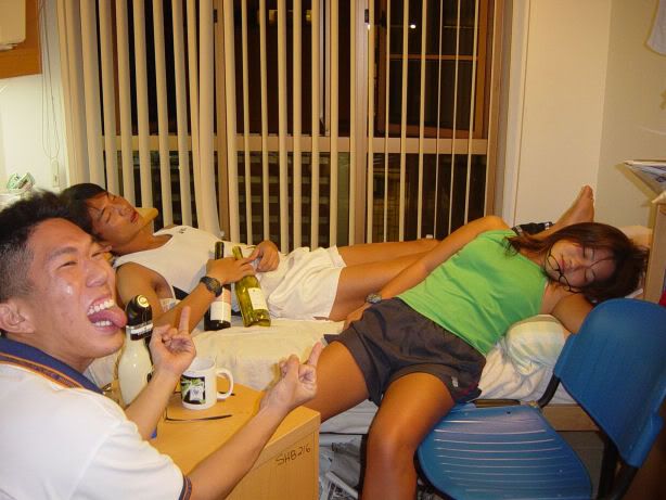 | PARTY TILL I DROP My exams ended today. That's right, after enduring the herd of NUS students who had ended on Wed/Thurs/Sat etc, today, Monday, 29 Nov 2004, was *my* turn for freedom. So it all started with me waking up at 7am. Or a little after 7am, being woken up by a kind phonecall from Wenya. I hope she didn't wake up especially just to call me, coz I'd feel so bad!!! GY called me while I was in the shower, and Adrian and Cheeling messaged me while I was on my way to SRC. So I got to MPSH 2 on time... which we shared with 600 other SNAILs. Ooh, and it was the same MPSH as Boon Chin. Imagine tt, I just did my paper with all sorts of NUS students. And the most irritating thing - law students ended our papers the latest at 2 hours 30 mins. So we had to endure 2 other announcements at 2 hours and 2 hours 15 mins respectively. Or rather 4 announcements if you count the repetitive "You have 15min before the end of your paper blah blah blah". Damn sian arh! Wah lau... At 2 hours and 2 hours and 15 min some guy will tell you to "Put your pants... (pens) down blah blah blah confiscate blah blah blah fail blah blah blah zero etc" in non-perfect super-grating English. Damn bloody distracting. I wish we could have our own private exam hall, or at least with people who end the same time. Fucking ridiculous. Ironically, if I had nothing to write for Prop, I had too fucking much to write for this paper. Too much to write, too little time. The usual exam syndrome. Hey, at least I did the 50 mark question before the 25 mark question, so that even though I was left with 15 min for the last question, I didn't die as much as I would have had I done the paper in the normal order. Anyway my eye was still red from yesterday. Don't know what the fuck is wrong with my eye. You'll see how red it is in a later picture. But nonetheless, first thing I did - rush out of the exam hall (with as much dignity as possible), throw all my company law notes in the SRC Conference Room, and head down to Orchard (with Vanessa, another law student). There, I pierced my ear (bringing earhole count to 10. YAY. Nice round even double-digit number means I can stop now), met Adrian and GY for lunch at my beloved Swensen's, where I had salmon baked rice, frosted chocolate malt (yes Yes YES!!!) and earthquake!!! Oh... and absolutely bad service. Oh, but first, want to see how red-eyed I look over my frosted chocolate malt? ![]() Stunned look is not intentional. Here I am happily enjoying my delicious ice-cream and maltesers and stupid Adrian tells me to look up and before I know it - bam! In full red-eyed glory I get captured in a moment of fame. Fantab. Absolutely fantab. The only thing funnier than tt is Adrian proclaiming that he is a good kisser just because he can tie 1 miserable cherry knot... and GY pretending to tie another too (but cheating by using his fingers)! Adrian Wong: because you asked for it I shall put it on my blog. You *think* that you are a good kisser. Anyway besides the great ice-cream and food, we also get ridiculously bad service. For some reason all the waiters seem to ignore Adrian. Thing is du-lan face or not, we're still paying customers and we still have a right to be served! What the hell man? For our 10% service charge we're not getting any service at all... Haha... Adrian was so mad, and we so don't blame him. After Swensen's it was off walking around all the way to Far East. I'd originally wanted to go shopping, but shopping with 2 guys is just too damn weird. For all of us. What the hell? I feel pressured to rush, they don't have anything to do. Strange strange strange. Fortunately I bump into Miss Lee Wanyi and Miss Jane Lee Zhen Zhen, who now sports short hair and looks even hotter than ever. Wahaha... The shop owner at Cheeks actually hit on her, telling her a bag had her name on it ("Gorgeous") and offering it to her at $4 off the usual price! Ah, but beauty has its benefits, no? Anyway the three of us walk back from Far East to Cine for dinner at Subway, then off to PS where I buy this pretty black tube dress and wahaha... 2 penguin fans that are just SO cute!!! ![]() Spent quite a fair bit of moo-lah today. But am satisfied. It's called retail therapy. Wanyi and I got back to hall a little after 10.30pm, just in time for me to catch 45 min of America's Next Top Model. Dammit, I missed tt segment where Shandi cheated on her bf (GRR!!!) but I caught the rest of the show, like when she was "wailing uncontrollably" (according to Charmaine). Ooh, I love reality tv. More dirt, more power!! :) And then oh yes... the drinking. Well, essentially the agreement was since I was ending on a Monday (what a fucking loser day to end), such tt I couldn't go Phuture, I couldn't go anywhere clubbing, and since my going to Mauritius would entail me missing out on a whole bunch of Phuture/ZoukOut/Singapore Marathon type events, Adrian, GY and I decided to hold our own post-exam celebration with wine and chips. Oh wait... who is Adrian you ask? Well. ![]() That is Adrian. Abs and all. Seriously, he should just take this picture and send it in to the Straits Times. Look at the abs. You can crop off the neck and it'll look pretty good. *evil grin* Let me introduce him to you. He's a bit of a cockster. ![]() He sucks at Red Alert. And when he plays Red Alert, he gets so engrossed in it tt he fails to notice other... intruders. ![]() Anyway tonight Adrian was feeling stressed. ![]() He was feeling so stressed from all that STUDYING that we did... ![]() ...that he decided to call GY and me over for a drink. Who is GY you ask? [edit (10.48 am, Nov 30 2004): this photo has been removed at the request of the person in the photo. He does not want to be seen by the public as looking retarded with a penguin fan on his head. As such I am doing him this favour of removing this highly embarassing photo of him. Nonetheless, GY is the one wearing the NUS T-shirt. Yes. Well. Now you know.] ...Yeah. That, is GY. Anyway we were