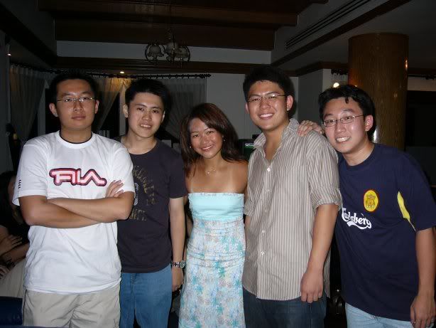 #8: The Home Team Scholars. Haha. I rem when we went to celebrate Johnny's 21st birthday, and his dad yelled "POLICE SCHOLARS!" so loudly across the house you could hear him from half a block away. So paiseh. At least I just say "Home Team people". Less malu. HEH. Anyway it's Debiao, Kailin, Qicong, Ivan and Johnny. I hadn't seen them in ages coz we were all so busy!!! (okay, except Johnny Wonny). :)