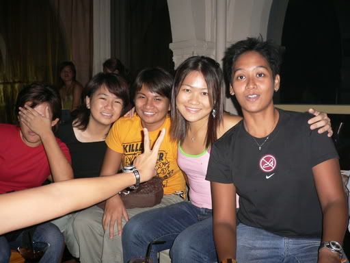 Yunshan wanted to dedicate a song to Melissa, so I decided to dedicate The Verve Pipe's Freshmen. Although I should have tried for Lifehouse's You and Me since I believe they might have played it. And the drinks are ex. I ordered a Blowjob again coz I only like shooters. And Melissa ordered a peppermint martini tt tasted like Listerine; Wendz a chocolate martini tt didn't taste very chocolatey; Vic ordered 2 Charonnays (but they were good), Meiping a Tequila Sunrise tt was mild (and according to Cindy, not a dog), Serene a Manhattan Sweet (tt didn't look at all sweet) and Cindy a Corona. And Yirang and Jul ordered the housepours which were 1-for-1.