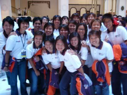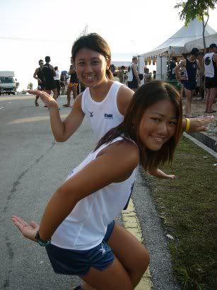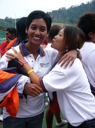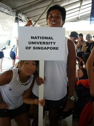 okay, admittedly the whole bunch of us were acting like real si geenas. the ntu guys, girls and canoeing team were also at sdba, and they were all quiet and serious and professional... and us nus girls were prancing around, screaming, laughing and doing stupid photowhore poses for our cameras! we have totally no credubility left among the other teams, i swear.