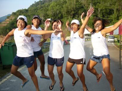 like serene said, the whole 100% compulsory attendence thing, the push-ups punishment when late, the whole-team-lunching/dinnering together tradition, the only eating when everyone else's food is on the table thing, the many little things tt just set our team apart from other teams (and which most our teams have never and may never ever understand or comprehend), it is what cultivates our bonding, and our feeling for each other. many of the girls here, including myself, row not because we love the sport (it's no secret tt i hate running, gymming, and i'm only 'okay' with rowing), but because we love the people and we don't ever want to let them down. we care for each other beyond the medals and the competitions. yes, we compete. yes, we have the will to win. but it's not an individualistic or 'personal glory' type goal - it's because we want to do it for each other. most people don't get tt.