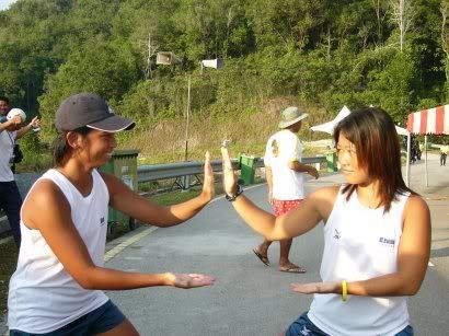 and then because of vic's singing of tt yellowcard song "only one", it kinda caught on to me. i started singing it from the moemnt we did pull-ups, till the time i was in the kallang shower cubicle and me and vic were massecring the song and i don't knwo if wendy joined in, but i know mona told me to shut up at one point, only to begin singing the damn song herself! wahahahaha!