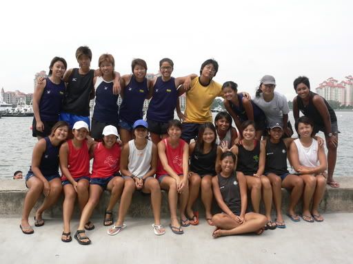 and i rem the 'easy row' set with ah ma on my left and ah ping coxing us. now *that* was funny. we weren't exactly easy-rowing coz it's difficult to control the champion in the water when you're not pulling fast enough, so to take our mind off the tiredness we were chatting with each other while rowing, and so while it looked deceptively relaxing it was in fact even more tiring. wahaha.