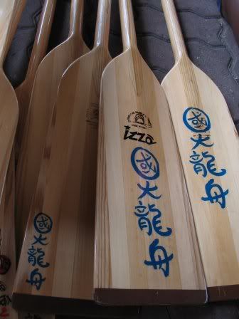 above: our beloved paddles. with 'guo da long zhou' proudly emblazoned. :) and yes, the 'izzo' is mine. done in black marker.