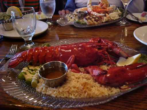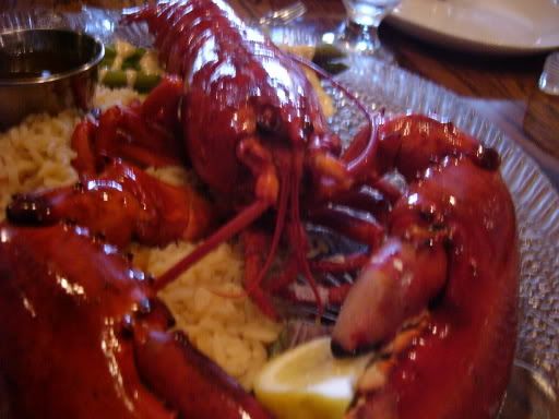 lastly, that is my lunch. all of it. a whole buttered atlantic lobster, served with buttered sauce and rice.
