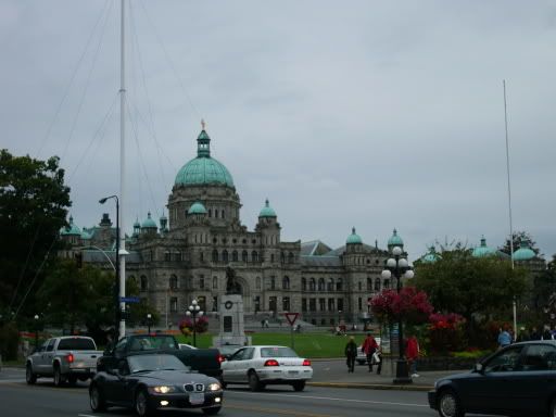 today we went up to victoria city on vancouver island. it's about 3 hours from downtown vancouver - 1 hour from town to the ferry terminal at tsawasskan, 1.5 hours ferry ride 50km over the georgia strait, and another 0.5 hours from the terminal to the inner harbour city.