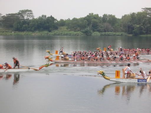 miss rowing miss my girls miss the feel of salt water on my skin and the pounding in my ears and the feel of my heart racing and lungs threatening to burst and the excruciating pain in my deltoids as they scream for me to stop rowing. but i would never stop, never stop seeing the end and the chequered buoy in sight and feeling the tension from the boats to the left and the right and hearing the screams and battlecries of my girls amidst the synchronised splash of our paddles dipping in. remembering the days leading up, the trainings with the crazy ass long-distance tyre trainings and pull-ups and push-ups and punishments for being late and the long runs to sheares bridge and the esplanade from kallang and back and my legs giving way to cramps and my breath just not coming fast enough and the painful sting of tears of defeat in my eyes before my girls come back to run with me back to kallang and hug me around the back and tell me tt i am strong and tt i can do it and i would do it all for them. the times sitting on the ledge making fun of the other teams and their breasts rowing below and singing my one-liners to the chargin of my girls and doing the rock chicks thing with my chick and hearing cindy's crazy laughter or listen to her lame jokes and her 'hur hur', and grabbing the paddles and walking very very slowly to take our baths and get unglam photos taken in the bathroom while we're sitting on the floor washing our hair or just coming out of the showers with towels on our heads and sitting outside the bathrooms later waiting for the boss to finally gel her hair and stroll out, usually the latest of everyone. dinners at beach road or marina square taking a whole table and talking about those pesky food bans and not being able to eat ice-cream or chilli for a month or more and feeling really sad (at least me) for them. and um, breaking the rules of those bans surreptitiously (shh). and race day breakfasts at mcdonald's bargaining with the boss so tt we can eat whole hashbrowns, and making the glucose and shaking it at 132 beats/s, and all the photo whoring of the lefties and righties and the long warm-ups and the lining up and the visualisations. getting into the boats and rowing to the starting line, fingers gripping the paddles so tightly as our hearts feel stuck in our throats with anticipation and trepidation all at once. water's uneven; boat rocks from side to side. but timing stays the same, all in sync. days and weeks and months of training and studying and eating together and familiarity leads up to this. coxswain at the starting line holding on to the rope steering us to a vertical position as the announcer kao beis for the god knows how manyeth time. but we don't care. end's in sight no matter how far away it seems and every set is our last set. we row for each other, we carry each other's weight. horn sounds and we dip in, and the boat surges. just keep rowing, looking at the pacer; nothing else matters. not the sounds, not the boats beside you, not the breathing difficulties or the pain in your chest and the throbbing in your head and not the pain in your arms. nothing matters but the end, the end and the girls in your boat. your girls. and maybe, dinner @ lau pa sat after tt, with the 4x9 food-ban reversing dishes tt everyone overorders for the sake of even though we all know we can't finish anything anyway, and all tt laughter tt follows the tears tt come at the end of a race.